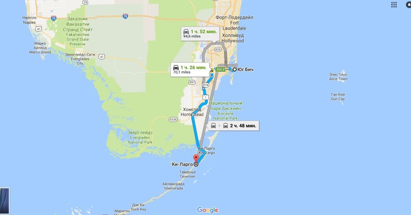 Дорога от Ки-Ларго займет у вас от 1 до 1,5 часов на автомобиле. На автобусе чуть подольше.