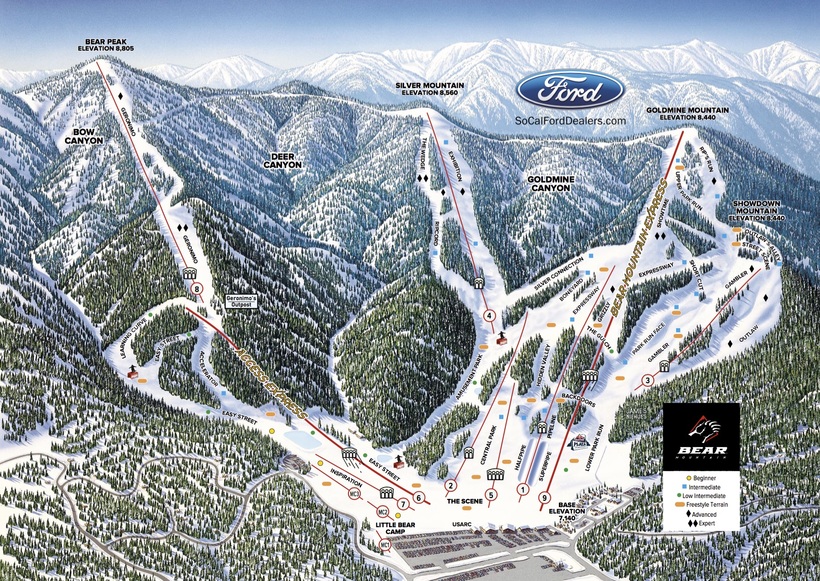 - Snow Summit. Ски-пасс на весь день — 67 USD по будням, 74 USD по выходным.