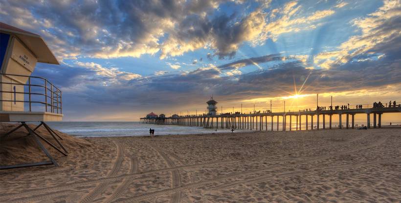 На пляже также находится знаменитый одноименный пирс. Это место, где можно погулять, поесть американские бургеры или сладкую вату, покататься на аттракционах и просто полюбоваться пейзажем.