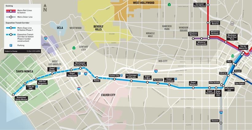 Метрополитен в Лос-Анджелесе открыли только в 1990 году, поэтому линии метро проведены не во всех районах. Систему подземного транспорта долгое время не решались строить в Лос-Анджелесе, так как город находится в сейсмоопасной зоне. Но на сегодняшний день метро, построенное из специальных гибких материалов, считается самым безопасным местом на случай землетрясения.