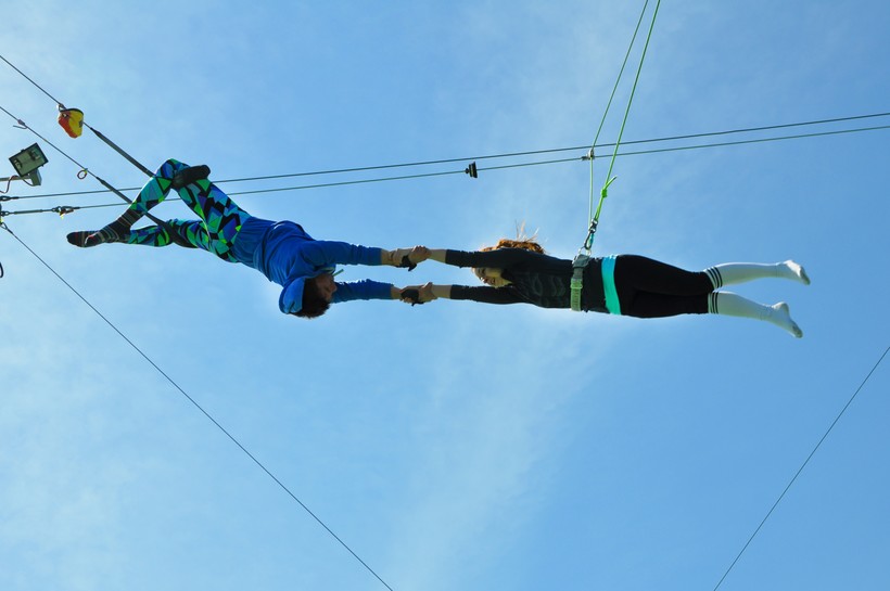 На Манхэттене большой популярностью пользуется школа прыжков и трюков на трапеции. Это необычное занятие полноценно заменяет тренировку в спортзале, так как активно тренирует все группы мышц, плюс развивает координацию и баланс.