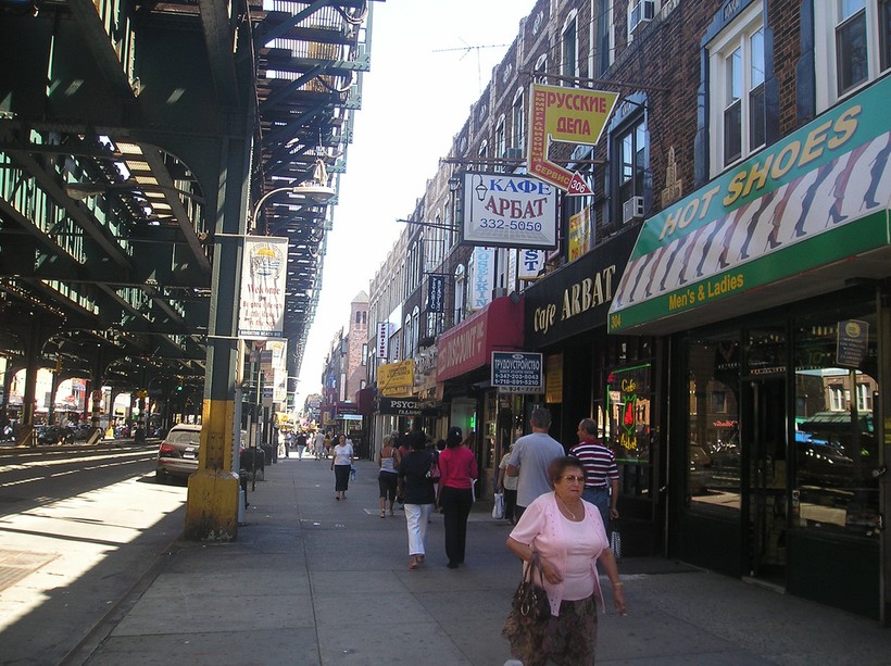 Что знают о Бруклине русские и украинцы? Правильно: что здесь есть район Брайтон-Бич (Brighton Beach), где не один десяток лет формируется плотная русскоговорящая община. Процент славянского населения в Бруклине, да и вообще в Нью-Йорке, действительно велик: по разным данным, в Нью-Йорке проживает от 300 тысяч до полумиллиона русскоговорящих. Большинство из них обитает как раз в Бруклине. Причем многие из них не владеют другими языками кроме русского, что не мешает им неплохо жить в Америке. Здесь свои вывески, своя пресса, свои культурные мероприятия.