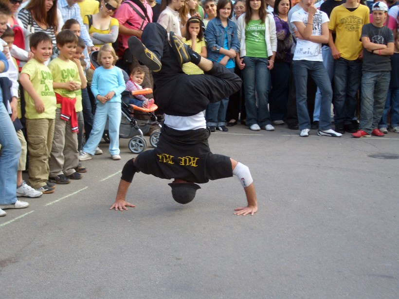 Именно здесь я узнала, почему, кстати говоря, брэйкданс называется именно так. В корне слова есть break — ломать, и долгое время я думала, что это связано с тем, что танец имеет несколько ломаные движения, резкие, отрывочные пассажи. Теория была шаткая, и она предсказуемо рухнула :) Оказалось всё просто: break — это перерыв, в том числе изначально перерыв в музыкальной композиции, когда певец не читает текст и не поет, а звучит только бит, под который и танцевали в подпольных клубах Бронкса парни-акробаты. Постепенно культура вышла на улицы, затем обрела мировое признание.