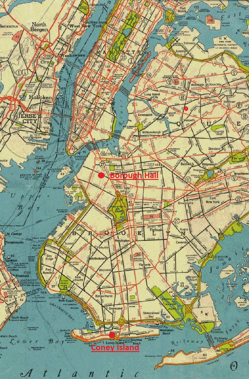 - Кони-Айленд (Coney Island, метро Coney Island) — изюминка Бруклина. Когда-то Кони-Айленд был чуть ли не самым известным парком развлечений в мире. Он часто мелькает в кино и по сей день.