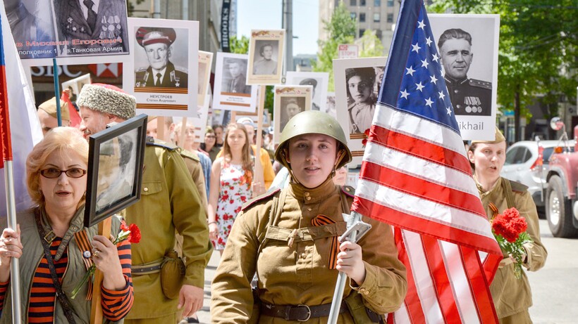 8 мая не является официальным выходным днем в Штатах и отмечается достаточно скромно. Ветераны собираются у памятника павшим советским солдатам, в городах проходят небольшие торжественные церемонии и парады.