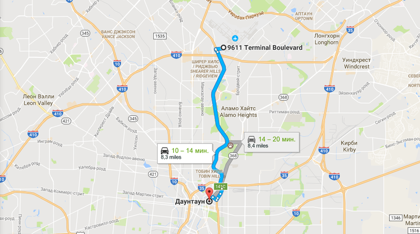 Из Москвы и Санкт-Петербурга в Сан-Антонио по воздуху можно добраться только с пересадками. Прямых рейсов нет. Средняя цена билета из Москвы — 1000 USD, из Питера 1100 USD в обе стороны. Сравнить стоимость рейсов можно, например, здесь. Полёты совершают авиакомпании: KLM, British Airways и Air France. Соответственно и стыковки либо в Амстердаме, либо в Лондоне или Париже.