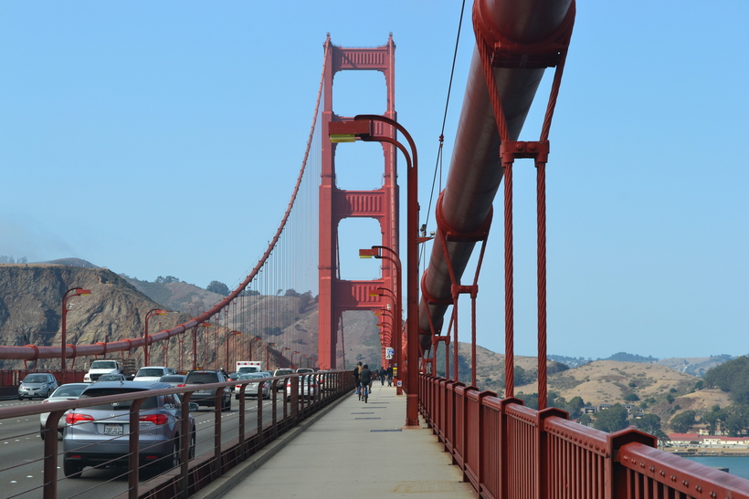 - 11.00 утра — берете в прокат велосипед, прямо там же у любого агенства, расположенного вдоль пирсов и отправляетесь к мосту Золотые ворота. Можно проехать по мосту и очутиться на другой стороне залива в городке Саусолито. Мост как раз-таки соединяет этот небольшой город и Сан-Франциско. Там тоже можно прогуляться, а если сил не осталось на поездку обратно - воспользуйтесь паромом, который возьмёт и вас, и ваш велик. Ходят они достаточно часто.