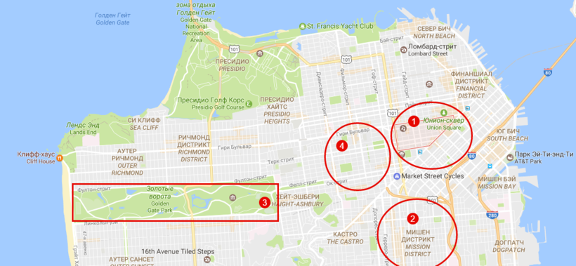 И кстати, не верьте людям, которые говорят, что можно называть Сан-Франциско «Фриско». Это не совсем так. Местные не очень любят это прозвище города, конечно, замечание вам не сделают, но это скорей всего это покажет им ваш низкий уровень осведомленности о культуре города. Лучше просто говорить СФ (SF).