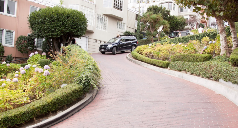 - Самая изогнутая улица — Ломбард стрит. Уклон холма составляет 27%, изогнутая дорога помогает сгладить этот угол наклона. кстати, улица находится на Рашн Хилле. Во времена Золотой лихорадки здесь было русское кладбище, которое в последствии перенесли. Скорее всего захороненные люди были моряками и предпринимателями из Форт-Росса (русская крепость, существовавшая в Калифорнии в начала 19 века).