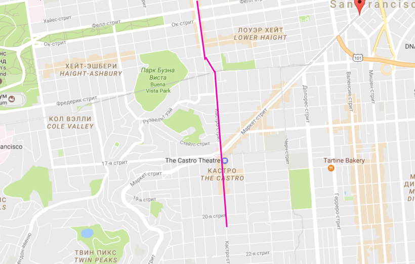 Еще можно посетить район Кастро. Это самый крупный в Америке (да и наверное в мире) район ЛГБТ сообщества. Концентрация меньшинств на один квадратный сантиметр — зашкаливает. Если вам не интересно или вы морально не готовы увидеть однополых людей, гуляющих за руки или что-то ещё, тогда лучше там не бывать, чтобы сохранить моральное равновесие. Находится: от Маркет Стрит до 19 авеню. Здесь находится множество гей-баров и прочих заведений.