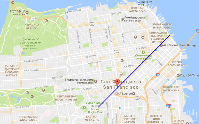 Мне кажется, что нельзя побывать в Сан-Франциско и не посетить Маркет-стрит. Скорее всего у вас не получится пройти мимо, ведь СФ достаточно не большой город. Местные называют его квадратом. Его протяженность в длину и ширину - 11 км, получается что площадь города всего 121 км^2.
