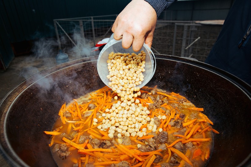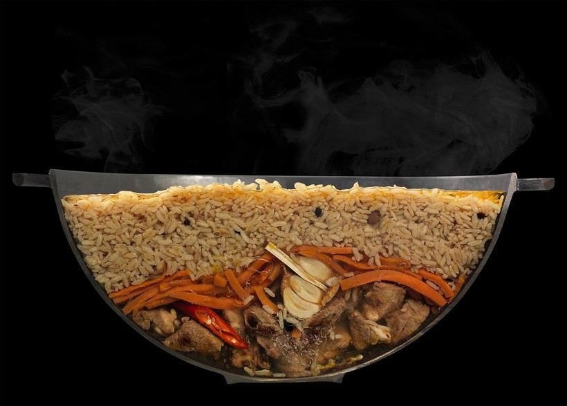 Правильный плов готовится из специального типа риса, из мяса барана и с обязательным добавлением ноток зиры, барбариса и молотого шафрана.