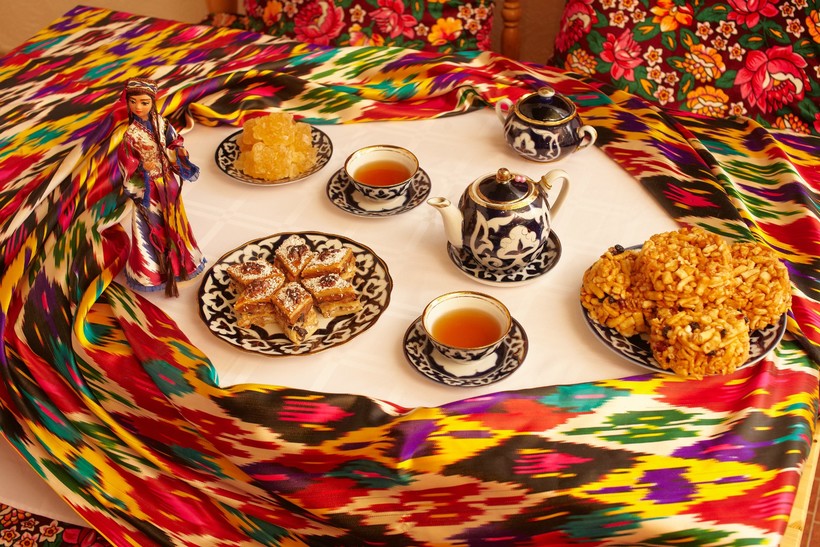 Несмотря на многообразие мясных и овощных блюд, узбекская кухня не была бы узбекской без восточных сладостей. Редко кто не пробовал халву, сладкое лакомство, приготовленное из муки, орехов и сахара.