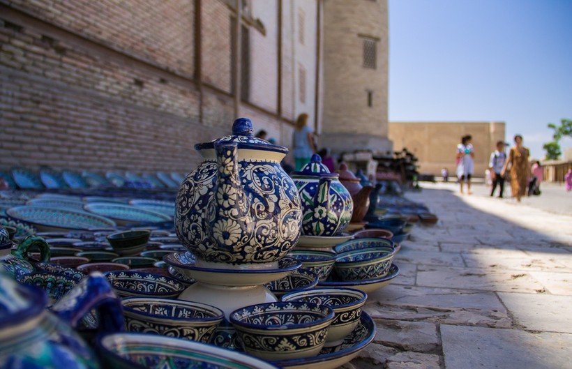 Керамические тарелки можно купить в столичном ЦУМе, здесь они довольно недорогие. Другое популярное место находится в 40 километрах от Бухары в городке Гиждуван, который славится древними традициями производства желто-коричневой керамики с синими и зелеными орнаментами.