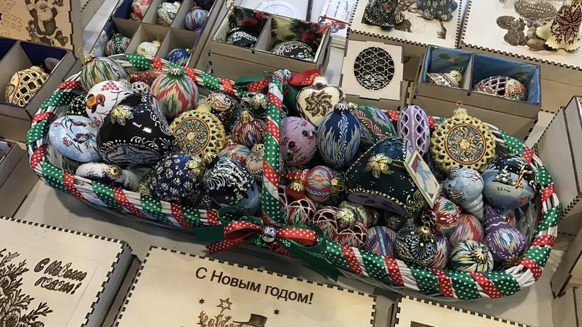 Набор колоритных елочных игрушек ручной работы в Самарканде можно приобрести за 12–15 USD.