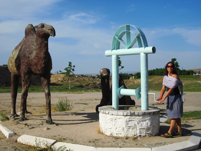 У входа гостей встречает памятник Улугбеку, а в нескольких шагах стоит интересная композиция из верблюдов и колодца, где можно сделать веселые постановочные фотографии.
