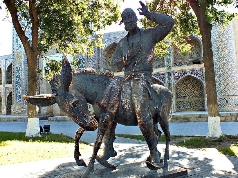 Здесь можно просто сидеть и смотреть на жизнь города, которая, кажется, совсем не изменилась за тысячи лет. Здесь люди едят, молятся и торгуют в одном месте. Радуются жизни, в общем. А еще здесь стоит памятник самому знаменитому бухарцу Ходже Насреддину на ишаке.
