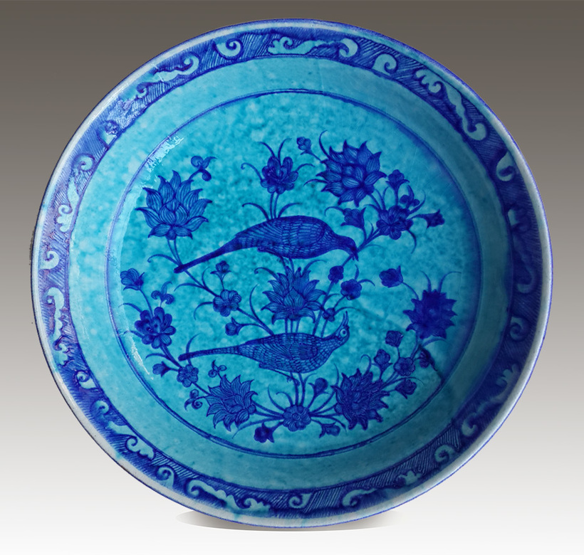 Это пример рыночной керамики, где яркие и штампованные рисунки очень симметричны и однообразны.