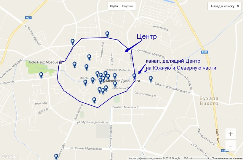 Самый удобный район, как вы уже поняли, Центр города, так как он небольшой, и все интересные места рядом. В очерченном на карте Центре города самая большая концентрация отелей, хостелов, ресторанов, кафе и достопримечательностей. Но это не значит, что за его пределами смотреть нечего. Там просто обычная тихая бухарская городская жизнь.
