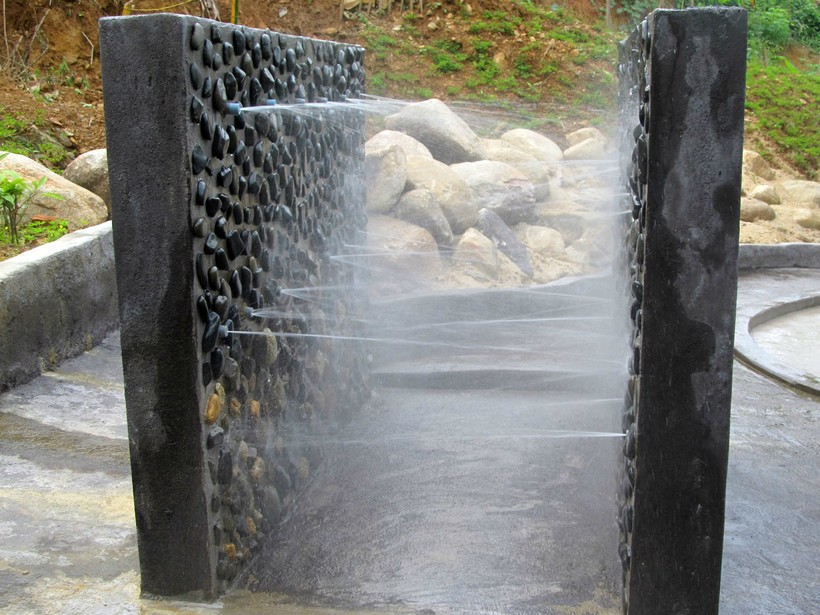 Кстати, на территории горячих минеральных ванн имеется душ шарко, напоминающий своих собратьев по грязелечебнице «Трап Ба».