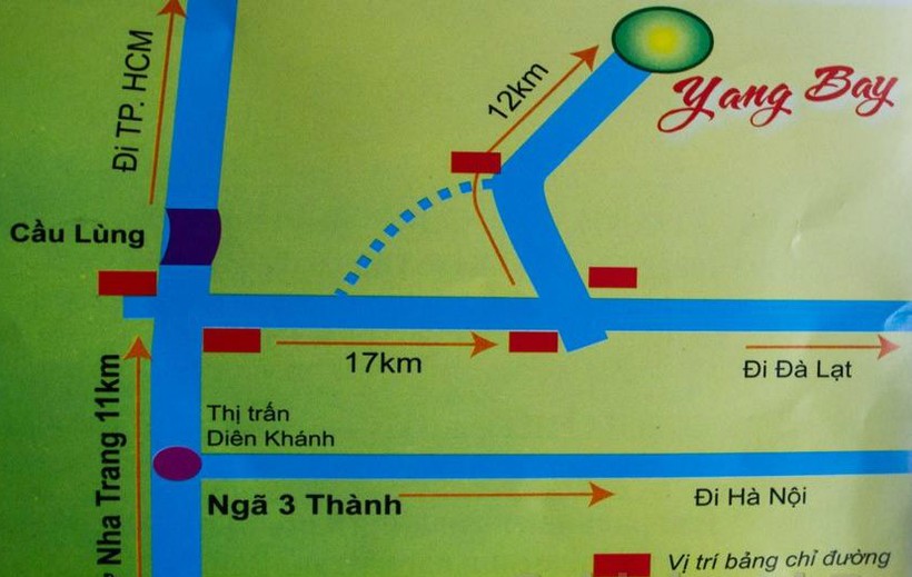 Двигайтесь из центра Нячанга мимо Католического собора. Проезжаете ж/д вокзал, гипермаркет «Метро» и торговый центр «Максимарк». По этой дороге вам предстоит двигаться около 18 км, дальше вы упретесь в поворот налево. Повернув, едете до кольца, на котором берете вправо. Здесь вы уже увидите указатели на «Янг Бэй». Следуйте указателям, и дорога Нячанг – «Янг Бэй» окажется одной из самых простых для вас.