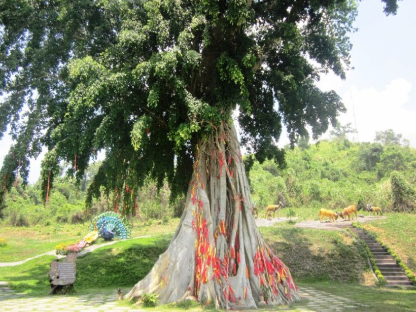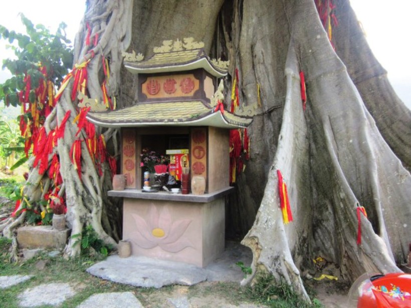 Еще до того, как вы попадете на основную территорию, вас встретит огромное дерево, история которого звучит в одной из древнейших вьетнамских легенд. Около 25 метров в высоту и с таким же размахом кроны, оно действительно впечатляет. Неудивительно, что рядом с ним фотографируются все и каждый. Оцените масштабы сами: