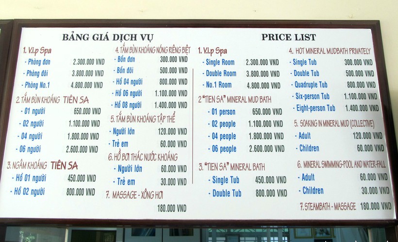 Стоимость посещений грязей Тхап Ба для детей в два раза меньше, чем для взрослых, а малышам до 6 лет вообще предоставлен бесплатный вход. Для детей работают два неглубоких бассейна. Скидок в грязелечебнице не предусмотрено, но если вы будете заказывать поездку группой в Русском информационном центре, вам могут выписать купон на 5% скидки на все горячие источники (кроме услуги массажа).