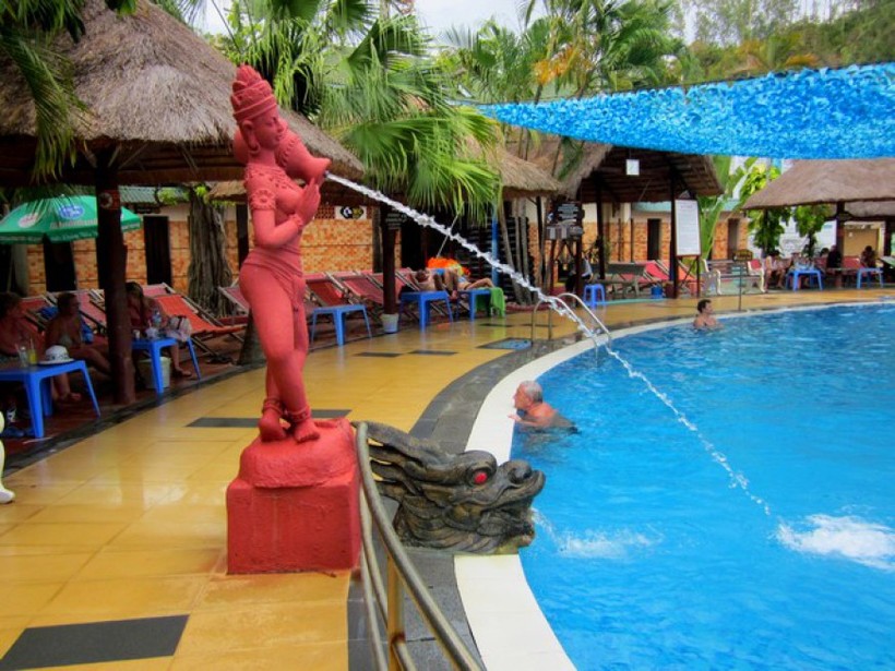 Далее следуют скромные переодевалки в виде шторки, которыми в основном пользуются мужчины, а женщины отправляются надевать купальники в туалет.Территория Тхап Ба невелика, но видно, что за ней следят и стараются сделать максимально уютной. Здесь приятно отдыхать и есть, что пофотографировать. Выглядит она следующим образом: