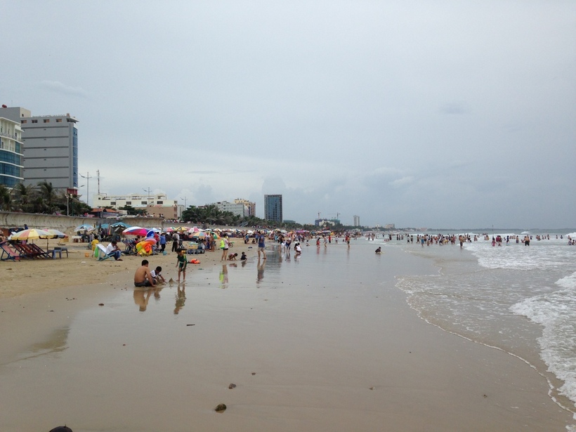 А если вы все-таки решились (уже купили билеты, например) и желаете ехать в Вунгтау, будьте готовы к очень плохому санитарному уровню кафе и ресторанов, грязным дорогам (детям нельзя просто гулять и трогать что попало), замусоренным пляжам и паркам, очень грязным квартирам и номерам в отелях, которые будто бы ни разу не мыли за все годы по-настоящему, ужасным ванным комнатам и т. п. А так выглядит пляж Вунгтау в выходные (с апреля по ноябрь):